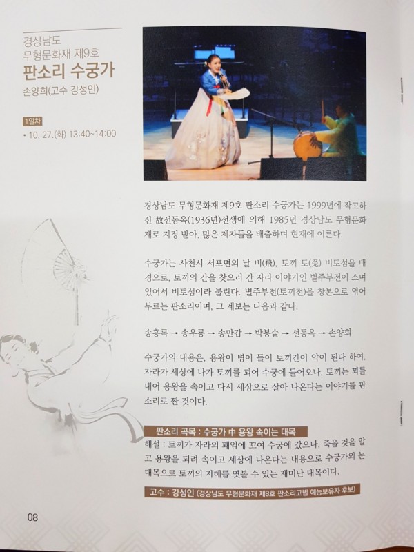2020년 경상남도 무형문화재축제 페이지 정보 작성자손양희국악예술단 댓글 0건 조회 1,962회 작성일 24-07-12 12:41 본문 코로나19로 인하여 행사가 취소 되었다가,한단계 하향 조정 되면서 다시 개최하게 되어, 여러분들을 초대합니다^^ <2020년 경상남도 무형문화재축제>를다음주인 10.27(화)~28(수)일 양일간, 마산 월영동 만날제 근린공원 특설무대에서 개최하게됨을 알려 드립니다.높은 가을하늘의 풍요로운 정취와 더불어, 우리음악의 흥겨운 풍류를만끽할실 수 있는 자리가 될것입니다. 모든 시름 내려 놓으시고,저희와 함께 우리음악의 매력에 푹~ 빠져보시기를 기대합니다~^^~ SNS 공유 목록 이전글<창극, 수궁가> "토끼야 수궁 놀러가자~ 24.07.12 다음글'전국국악경연대회' 비대면 경연 24.07.12 댓글목록 댓글목록 등록된 댓글이 없습니다.